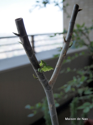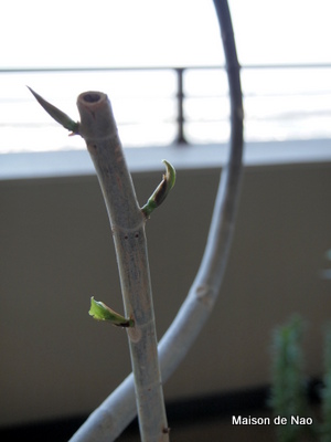 ゆっくり回復に向かい、新芽をチラホラ顔を出し始めた我が家のウンベラータ君。