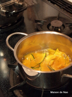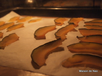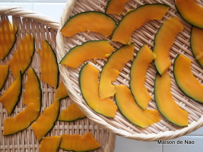 生のかぼちゃを薄くスライスし(スライサー使用)