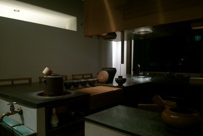 少し待ち、L字型の木のカウンター 一番奥に通された