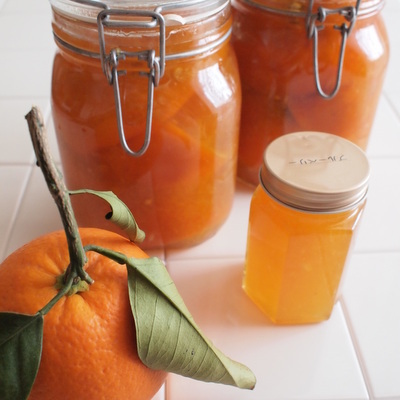 オレンジシロップに漬け込んで保存し